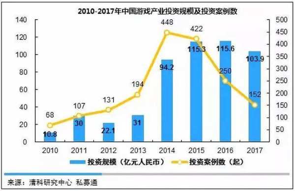 从投资活跃度来看,国内游戏市场的巅峰停留在2015年。